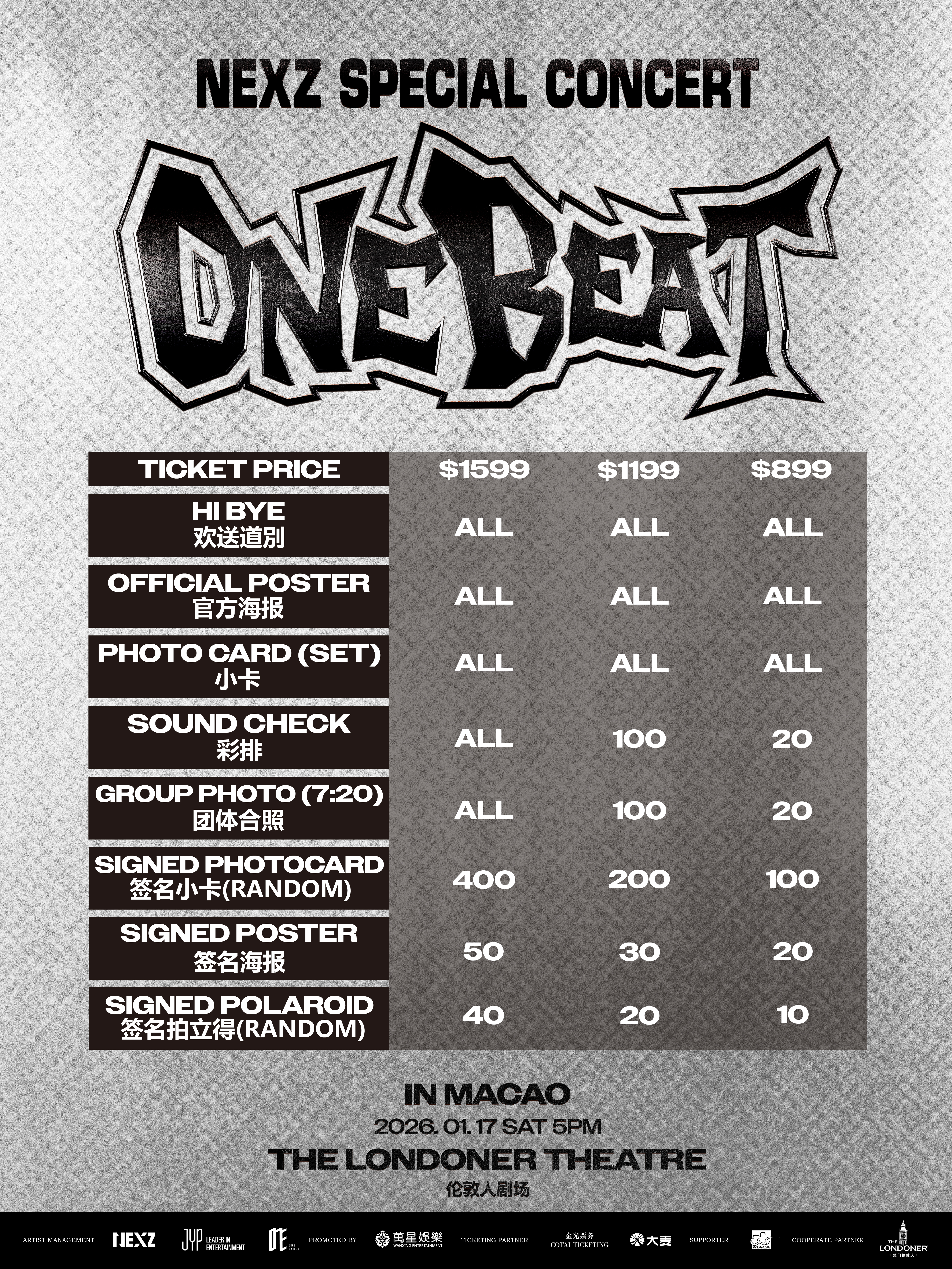 NEXZ 带著他们首个海外巡演 <ONE BEAT>登陆澳门! 用充满能量且强烈的表演呈现一场崭新的演出. 亲临现场感受和NEXZ彼此共同的脉动。
