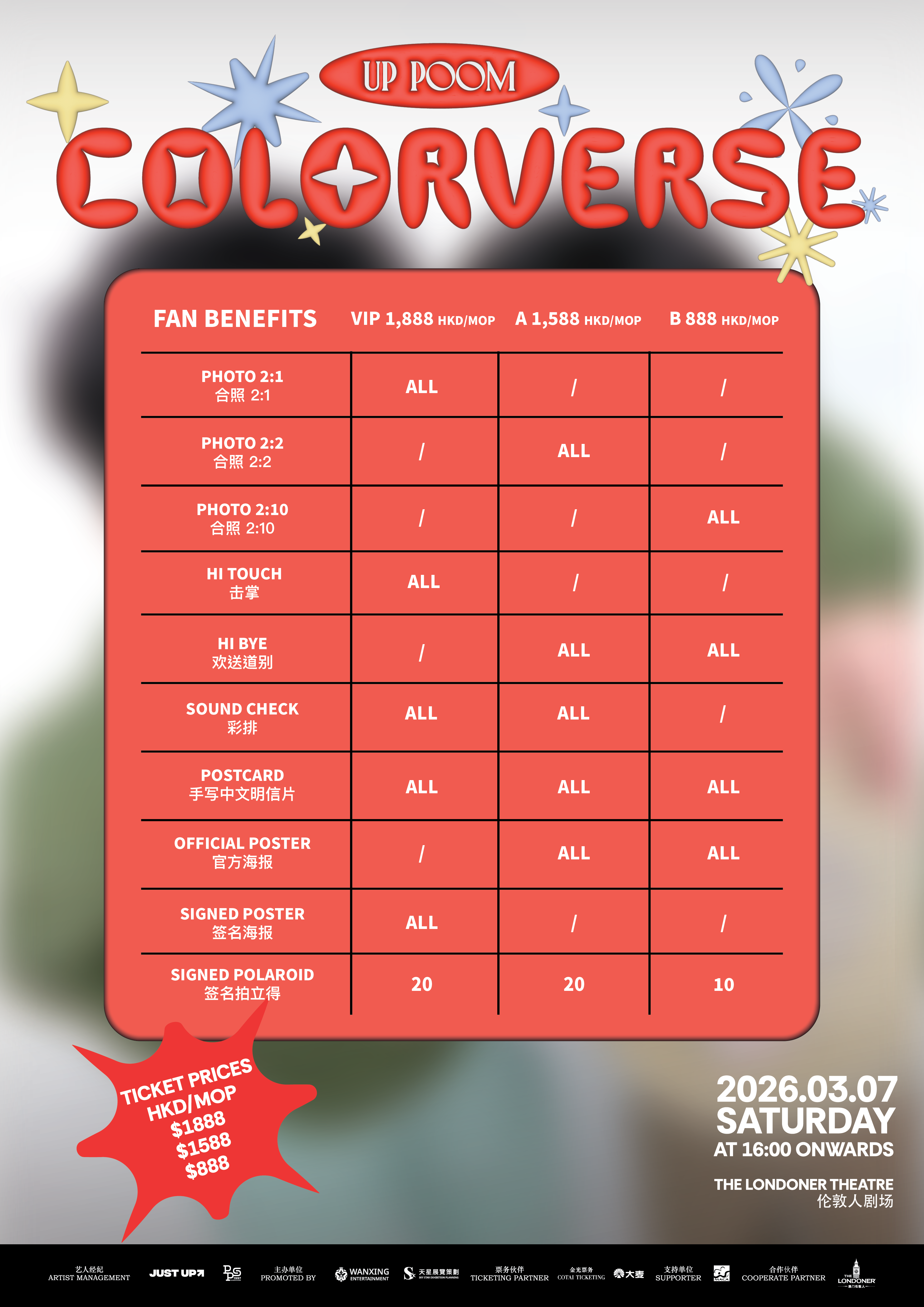 有关粉丝福利详细安排,请留意主办方平台:FACEBOOK帐号 “